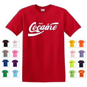 This soft cotton blend tee features a screen print detail of the cherry coke logo in red letters.